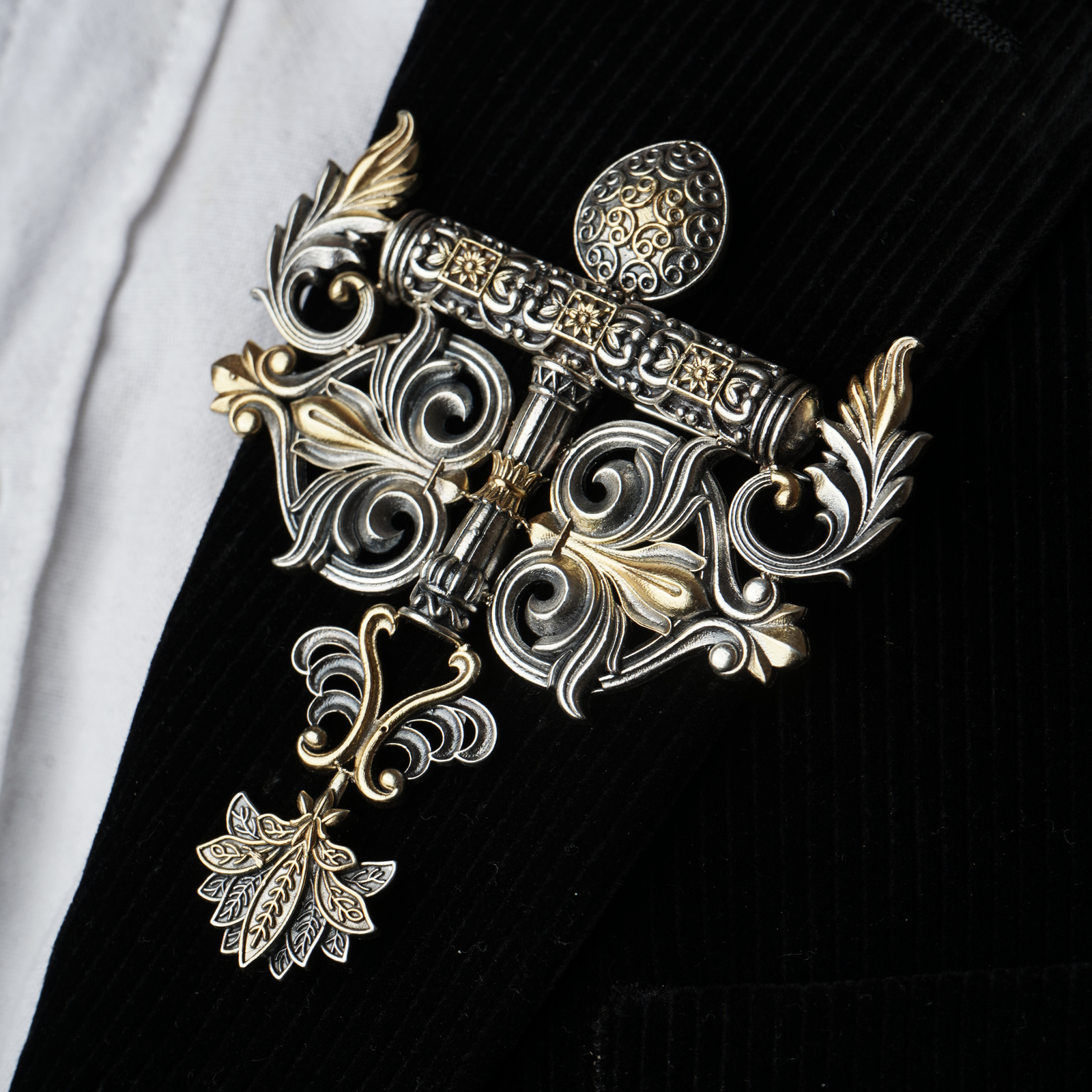 Luxury Handcrafted Pure Silver Vintage Brooch with Golden Accents