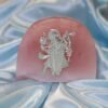 Elegant amethyst gemstone photo frame with detailed silver floral decorations at two corners.